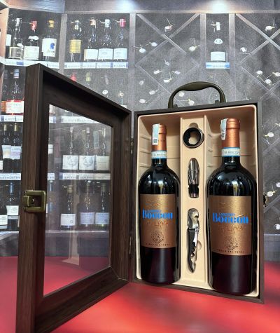Thiết kế sang trọng: Hộp quà được thiết kế với tông màu đỏ chủ đạo, biểu tượng cho sự may mắn và thịnh vượng trong năm mới.